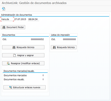 Tras haberlo subido, lo podremos visualizar fácilmente desde la transacción OAAD, dándole a la opción de ‘Búsqueda técnica’ que aparece en la imagen 1. Nos llevará a la siguiente pantalla donde debemos poner los datos asociados al documento subido: