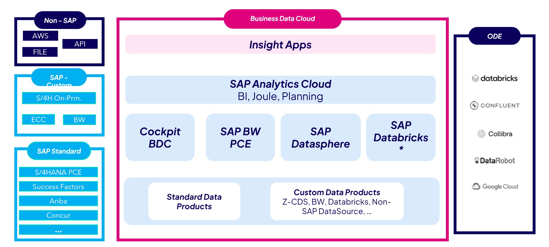 SAP comienza en el 2025 una colaboración estratégica con Databricks que abre la puerta a nuevos escenarios de analítica avanzada, ciencia de datos e inteligencia artificial. Databricks es una plataforma unificada de IA basada en Data Lakehouse. Ofrece analítica sobre datos no estructurados y una integración nativa con Business Data Cloud. Permite construir escenarios avanzados de data science y real-time analytics facilitando el acceso y análisis de datos No-SAP enriqueciendo los data products de SAP.