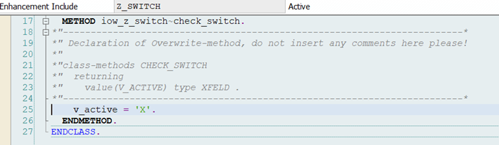 • Si el switch está desactivado estará activado nuestro código ABAP, pero los diferentes enhancements permanecerán inactivos.